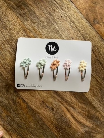 Dit knipje met een bloemetje maakt elke outfit compleet.
