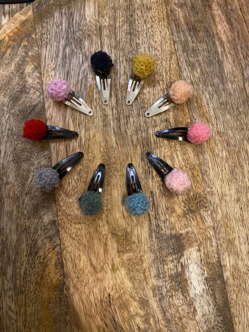 Dit knipje met een pompom van wol erop maakt elke outfit compleet.
