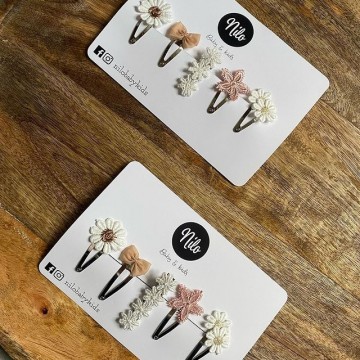 De haarspeldjes zitten op klik klak klipjes en op alligator klipjes ze kunnen al goed gedragen worden in de eerste haartje maar ook in een volle bos haar.