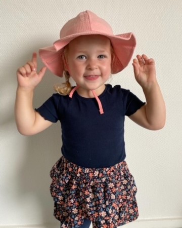 Het leukste zonnehoedje voor de wat grotere meiden. Vanaf +/- 1,5 / 2 jaar.