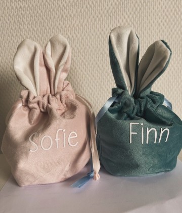 Dit schattige konijnzakje voor je kleintje om de paaseitjes in te doen tijdens het zoeken.